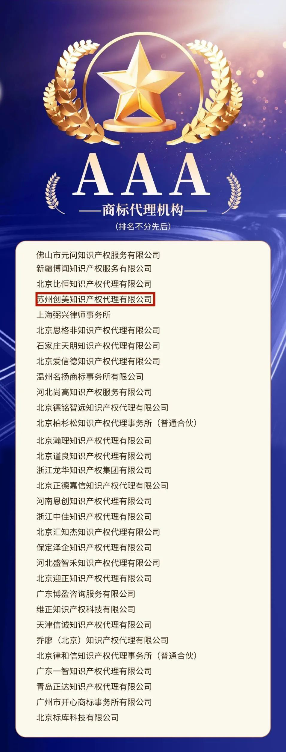 中华商标协会会长马夫表示,截至今年6月底,32000余家商标代理机构在国家知识产权局商标局进行备案,《600强》榜单通过相关指标对备案机构的整体业务数据进行汇总,其中600家商标代理机构分别被评为商标代理服务能力5A、4A和3A机构。《600强》榜单通过提高优质代理服务机构的辨识度,推动代理行业以优质服务为竞争手段,防止“劣币驱良币”,营造良好的行业竞争环境。